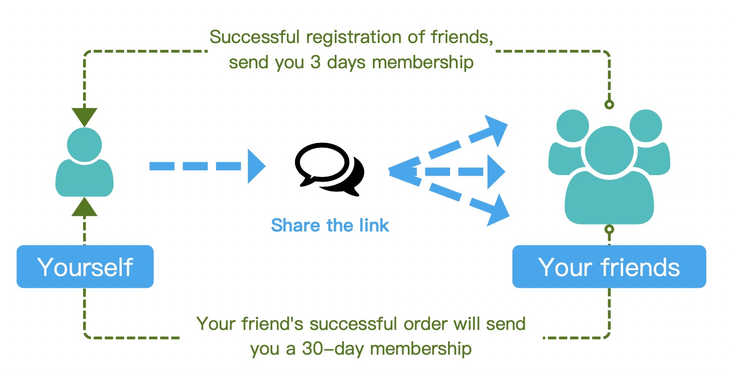 second step A good friend can receive a 3-day membership or a 4k VR premium experience when they successfully register through your share and receive a free trial.